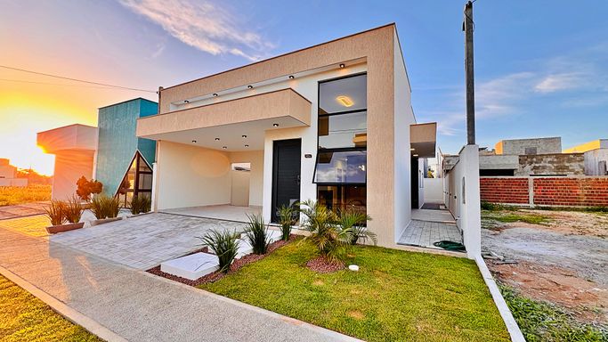 🏠Casa de alto padrão à venda no Condomínio Ecoville 1 📍Parque das Nações • 3/4 sendo 2 suítes e uma semi-suíte • Cozinha com ilha • Área gourmet com churrasqueira • Suíte master com closet • Área construída: 120m² • Área do terreno: 200m² • Área de serviço coberta • Garagem coberta para 02 veículos 💎 DIFERENCIAIS DO IMÓVEL 💎 ✔️ Fachada super moderna com pele de vidro do piso ao teto (pe direito alto); ✔️ Fechadura digital; ✔️ Perfis de led na fachada; ✔️ Todas as suítes com sacada; ✔️ Pré-disposição para energia solar; ✔️ Led’s nos banheiros e ilha da cozinha; ✔️ Boiseries na sala e suíte casal; ✔️ Casa entregue com paisagismo.
